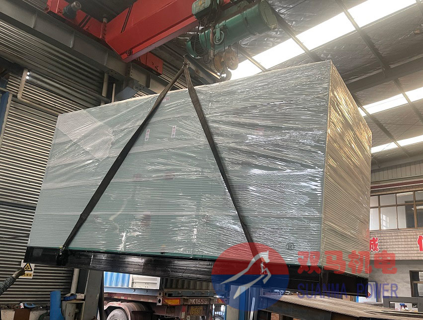 老客戶訂購的兩臺康明斯靜音柴油發電機組今日裝柜。該兩臺發電機組是500kw的,500kw靜音發電機組的高度和寬度和柜體的尺寸基本一致,